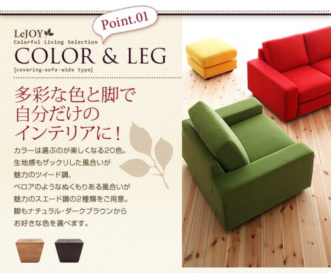 リジョイシリーズ:20色から選べる!カバーリングソファ・ワイドタイプ ソファ別売りカバー 1P
