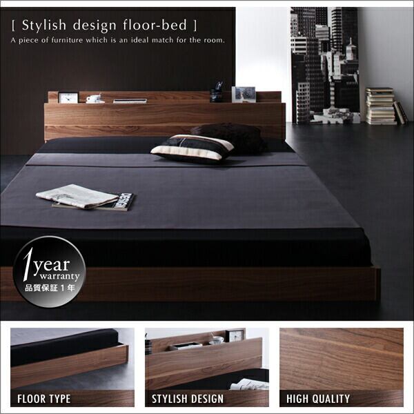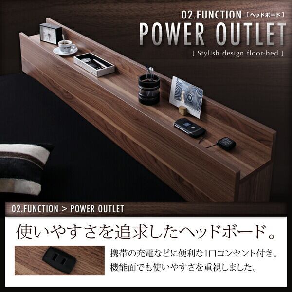 棚・コンセント付きフロアベッド ベッドフレームのみ セミダブル