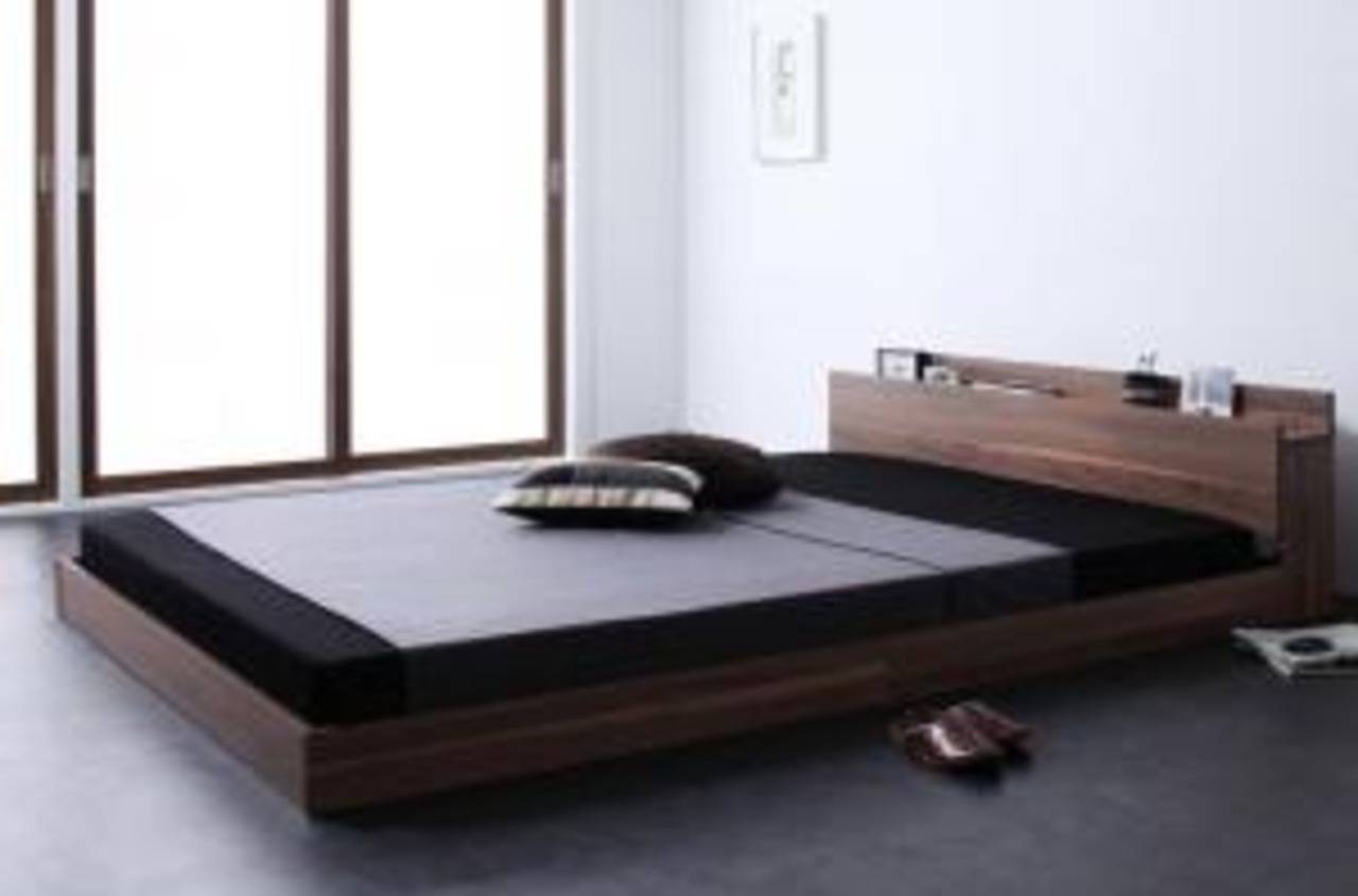 棚・コンセント付きフロアベッド スタンダードポケットコイルマットレス付き シングル
