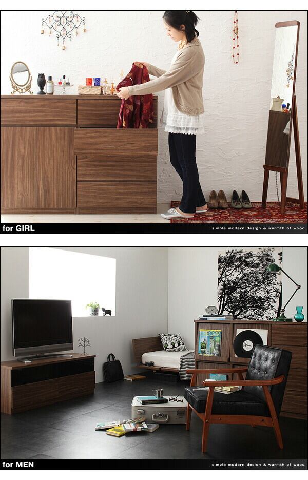 シンプルモダンリビングシリーズ 2点セット(キャビネット×2)
