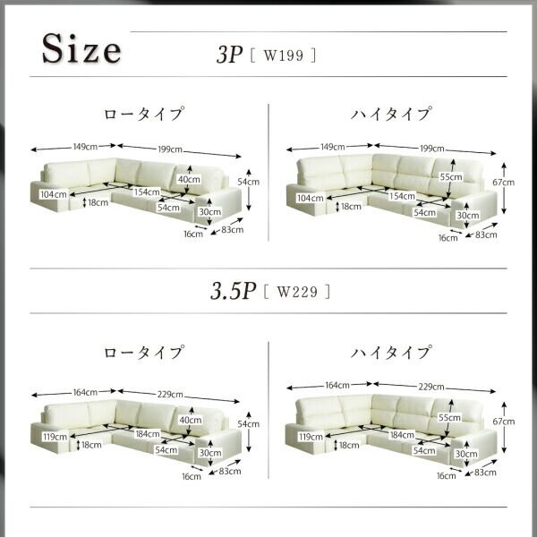 フロアコーナーソファ ソファ ハイタイプ 4P