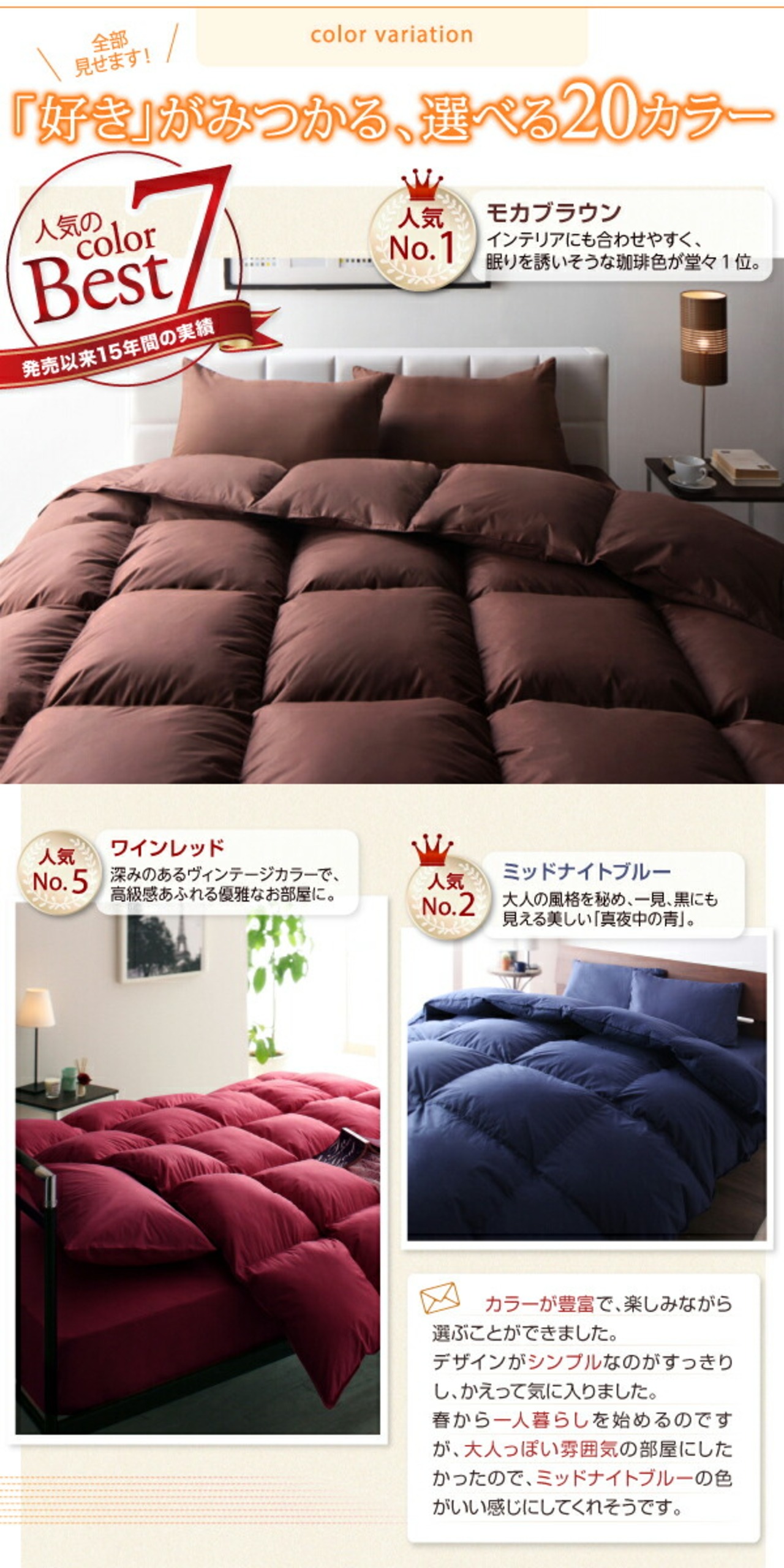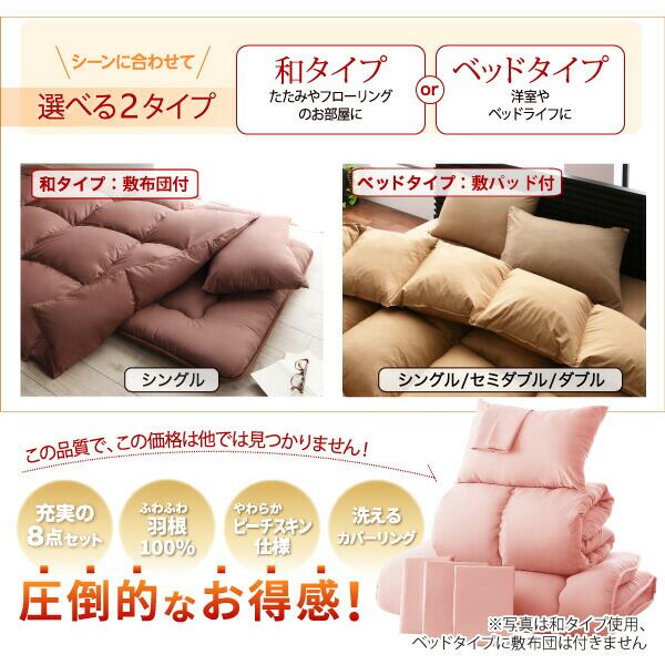 3年保証 新20色羽根布団8点セット ベッドタイプ セミダブル8点セット