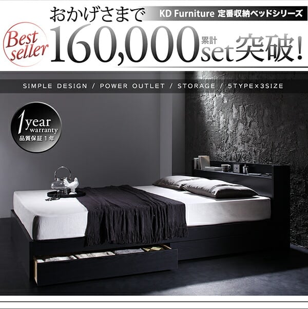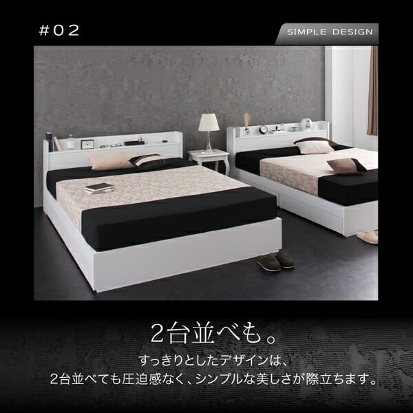 棚・コンセント付き収納ベッド プレミアムポケットコイルマットレス付き シングル