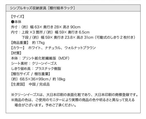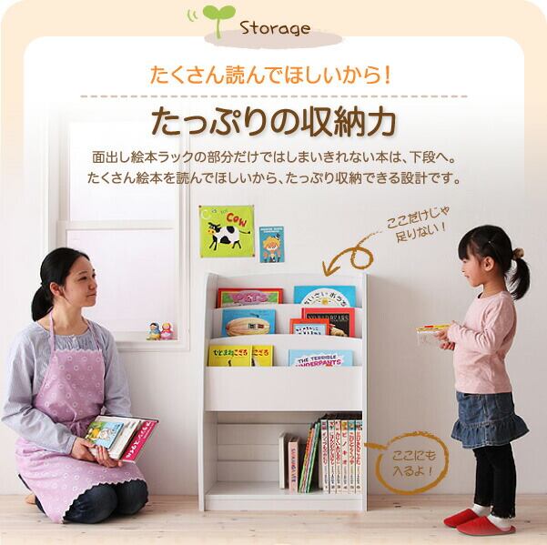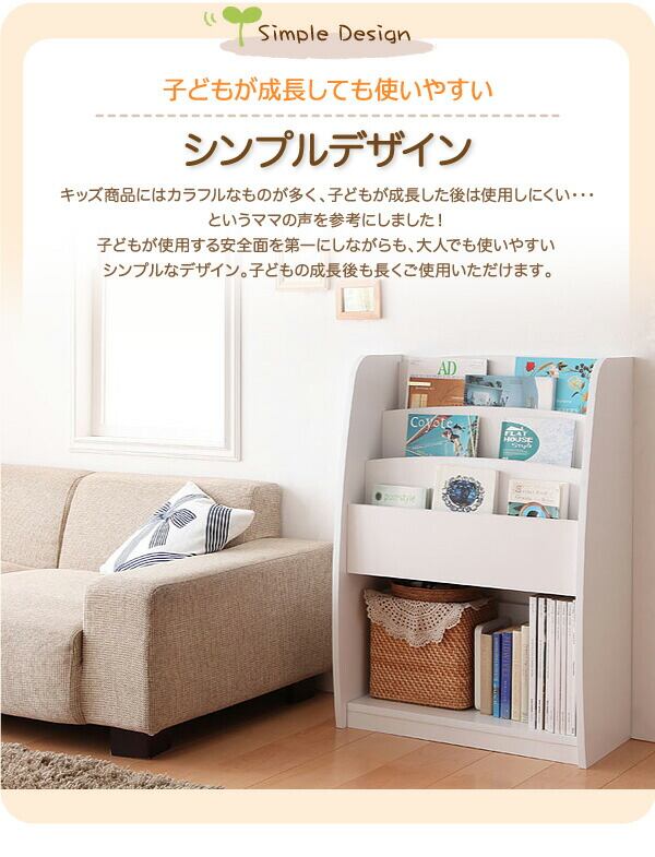 シンプルデザイン キッズ収納家具シリーズ 棚付絵本ラック