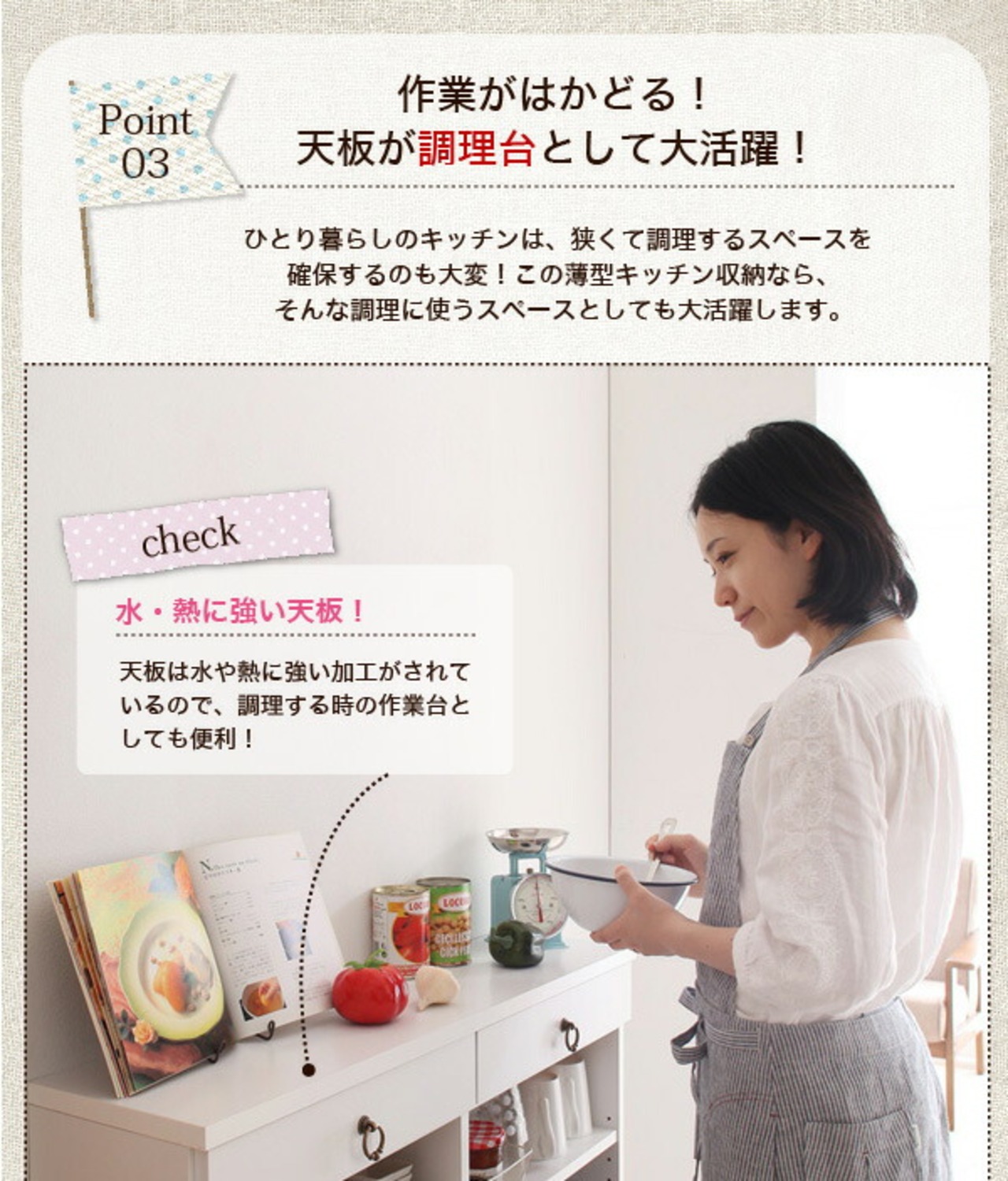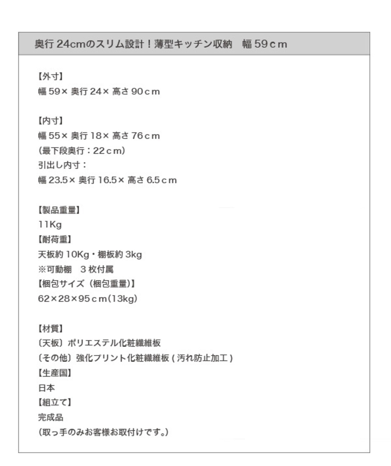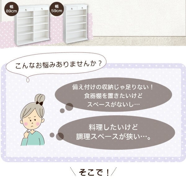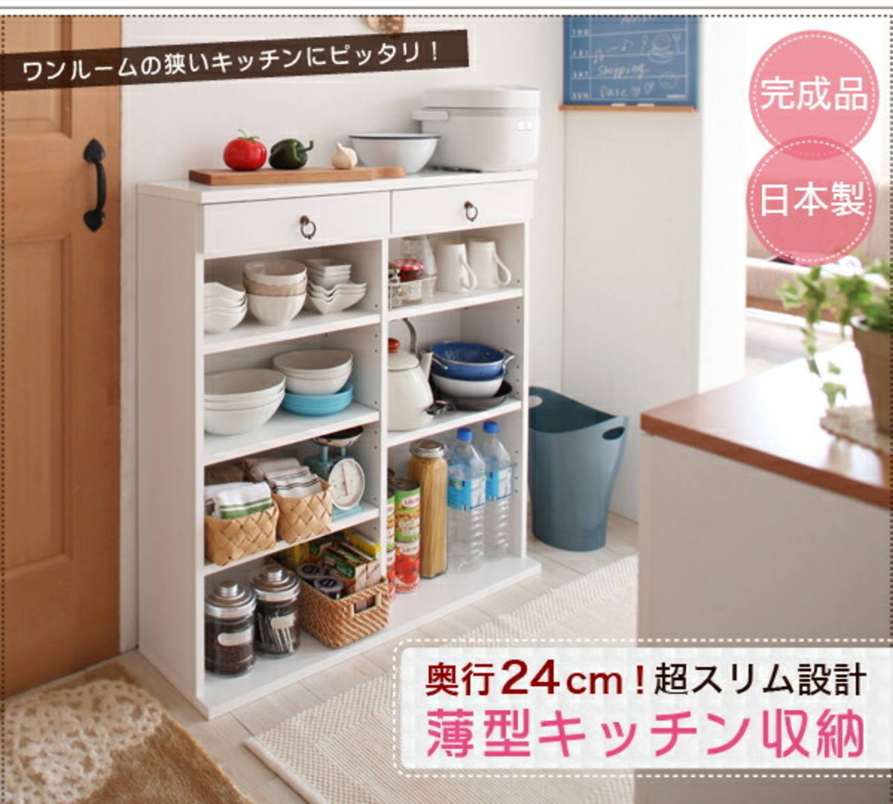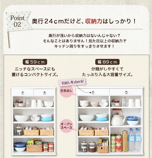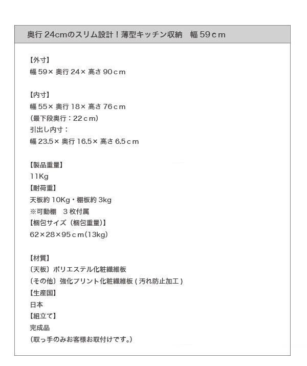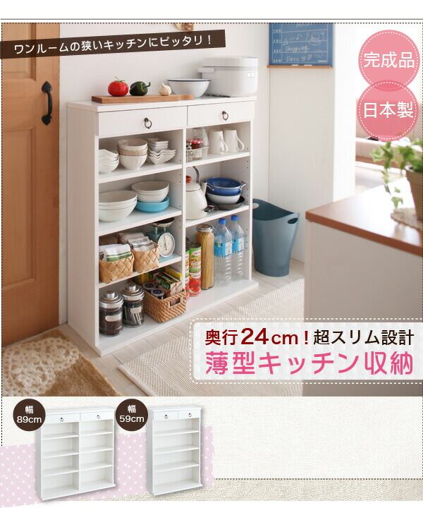 奥行24cmのスリム設計!薄型キッチン収納 幅89