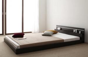 モダンライト・コンセント付き国産フロアベッド ボンネルコイルマットレス付き セミダブル
