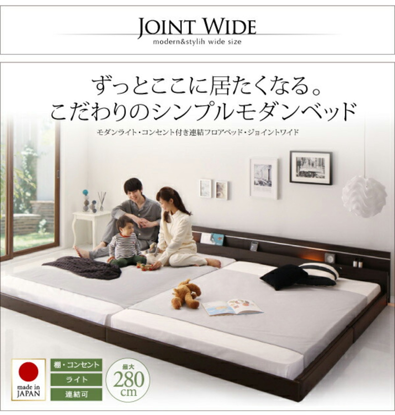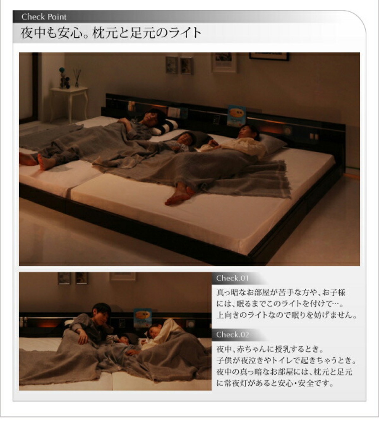 モダンライト・コンセント付き国産フロアベッド ポケットコイルマットレス付き ダブル