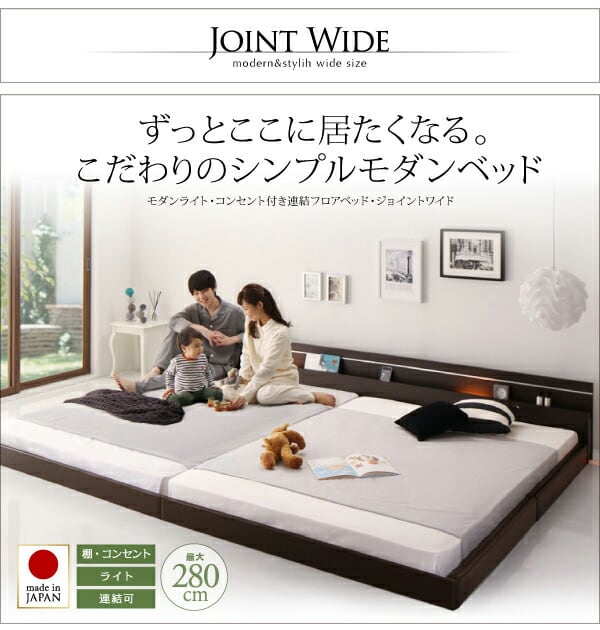 モダンライト・コンセント付き国産フロアベッド 国産ポケットコイルマットレス付き セミシングル