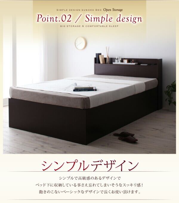 お客様組立 シンプル大容量収納庫付きすのこベッド 薄型スタンダードボンネルコイルマットレス付き シングル 深さラージ