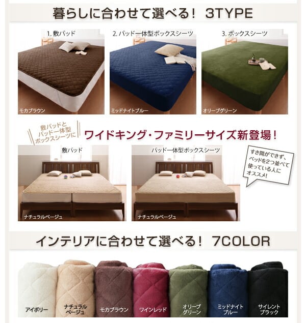 寝心地・カラー・タイプが選べる 大きいサイズのパッド・シーツ シリーズ 敷きパッド マイクロファイバー ワイドキング