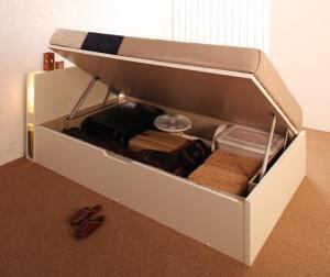 お客様組立 開閉タイプが選べるガス圧式跳ね上げ収納ベッド 薄型スタンダードボンネルコイルマットレス付き 横開き シングル 深さレギュラー