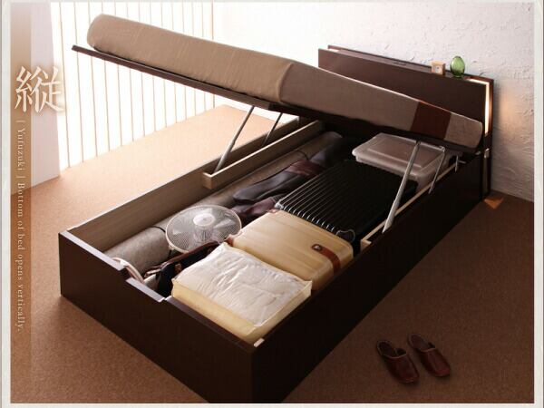 お客様組立 開閉タイプが選べるガス圧式跳ね上げ収納ベッド 薄型スタンダードボンネルコイルマットレス付き 横開き シングル 深さラージ