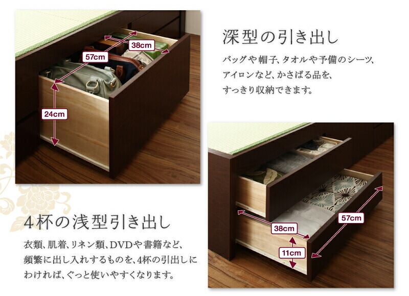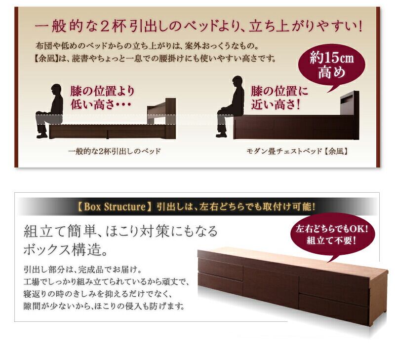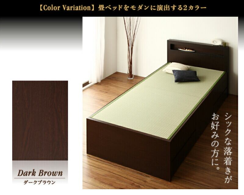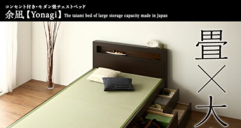 お客様組立 コンセント付き・モダン畳チェストベッド 国産畳 ベッドガードなし セミダブル