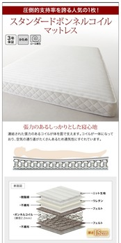 モダンデザインフロアベッド スタンダードボンネルコイルマットレス付き シングル