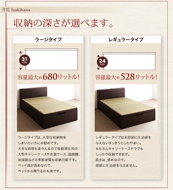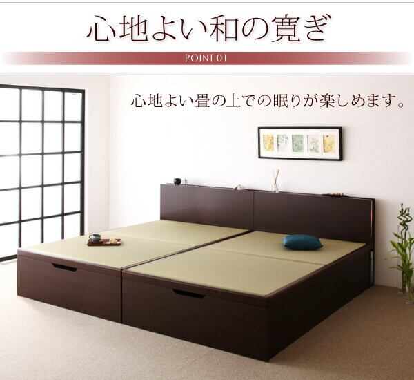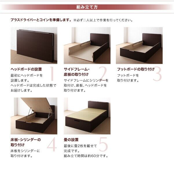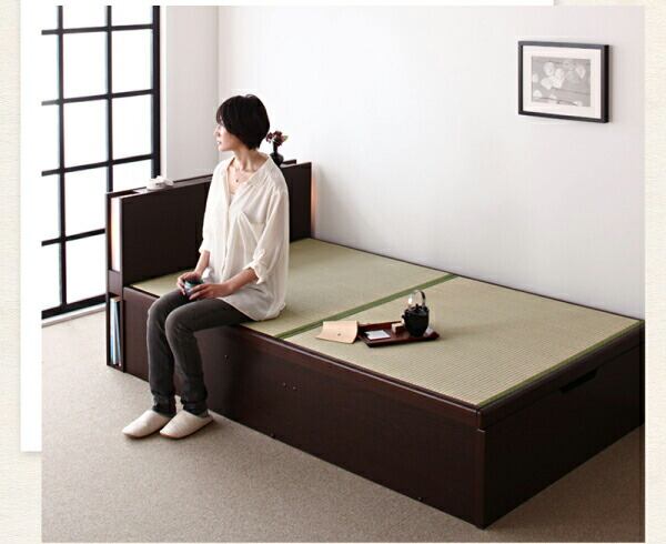 お客様組立 照明・棚付きガス圧式跳ね上げ収納畳ベッド 国産タイプ 縦開き・ベッドガードなし シングル 深さレギュラー