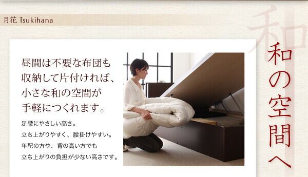 お客様組立 照明・棚付きガス圧式跳ね上げ収納畳ベッド 国産タイプ 縦開き・ベッドガードなし シングル 深さラージ