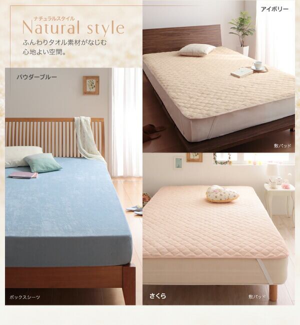 20色から選べる!ザブザブ洗えて気持ちいい!コットンタオルのパッド・シーツ パッド一体型ボックスシーツ 5色5枚セット シングル