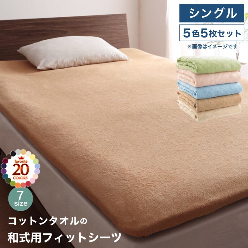 20色から選べる!ザブザブ洗えて気持ちいい!コットンタオルのパッド・シーツ 和式用フィットシーツ 5色5枚セット シングル