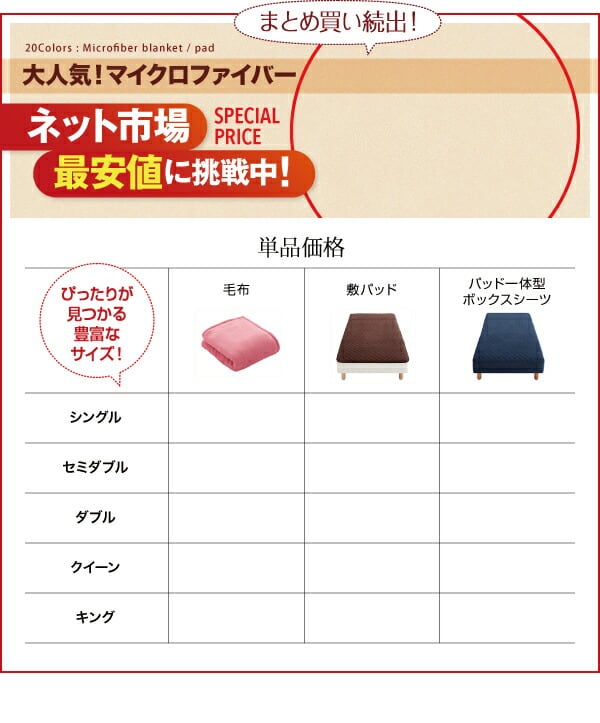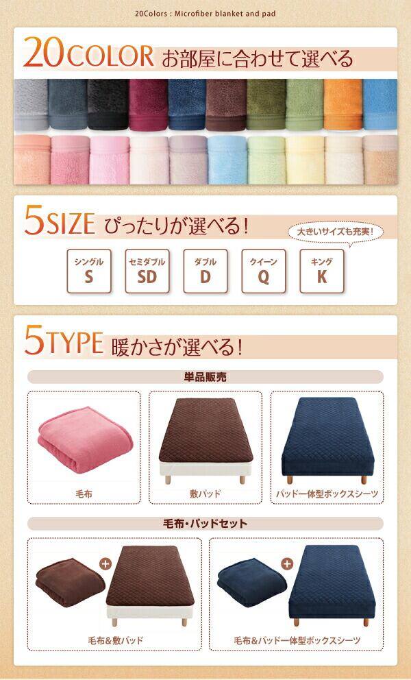 20色から選べるマイクロファイバー 毛布・パッド パッド一体型ボックスシーツ ダブル