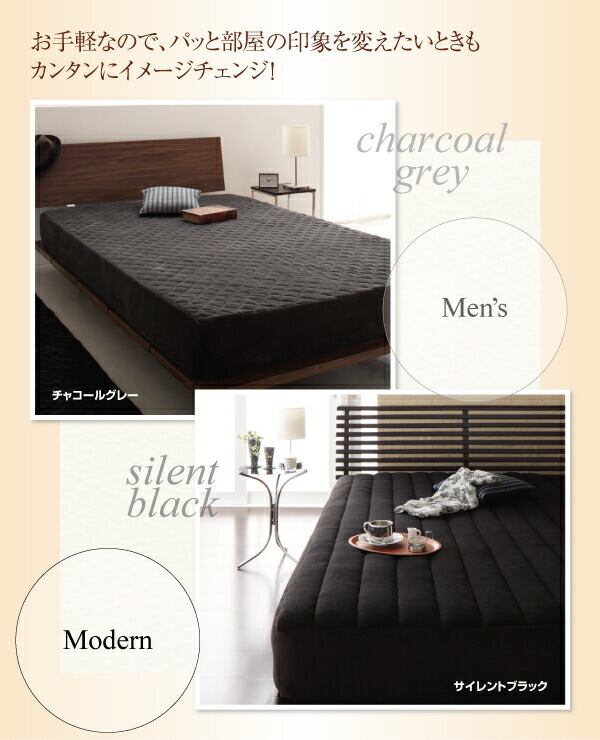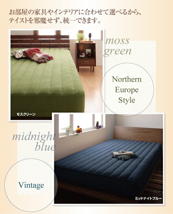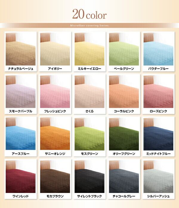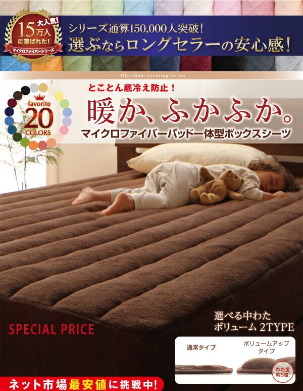 20色から選べる!マイクロファイバー パッド一体型ボックスシーツ 中わたボリュームタイプ ワイドキング