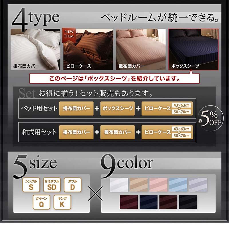 9色から選べるホテルスタイル ストライプサテンカバーリング ベッド用ボックスシーツ シングル
