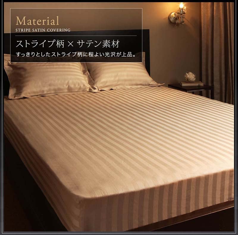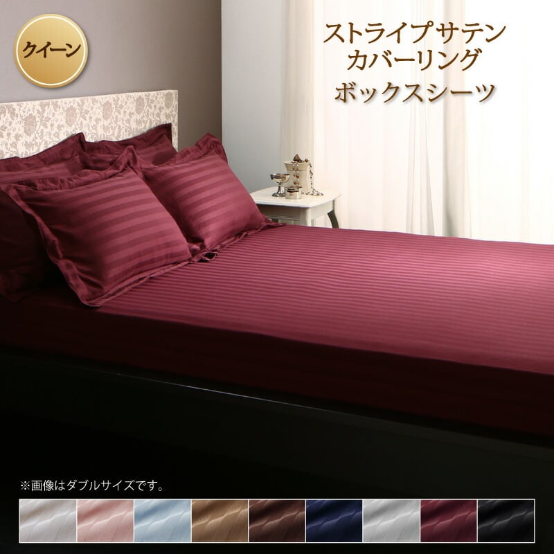 9色から選べるホテルスタイル ストライプサテンカバーリング ベッド用ボックスシーツ クイーン