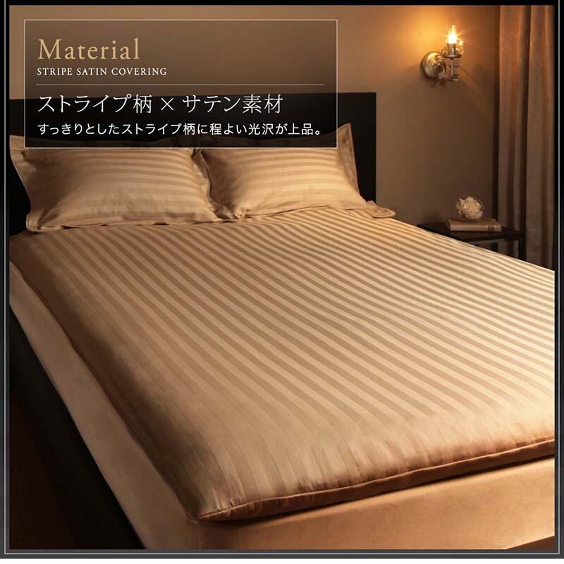 9色から選べるホテルスタイル ストライプサテンカバーリング 敷き布団カバー セミダブル