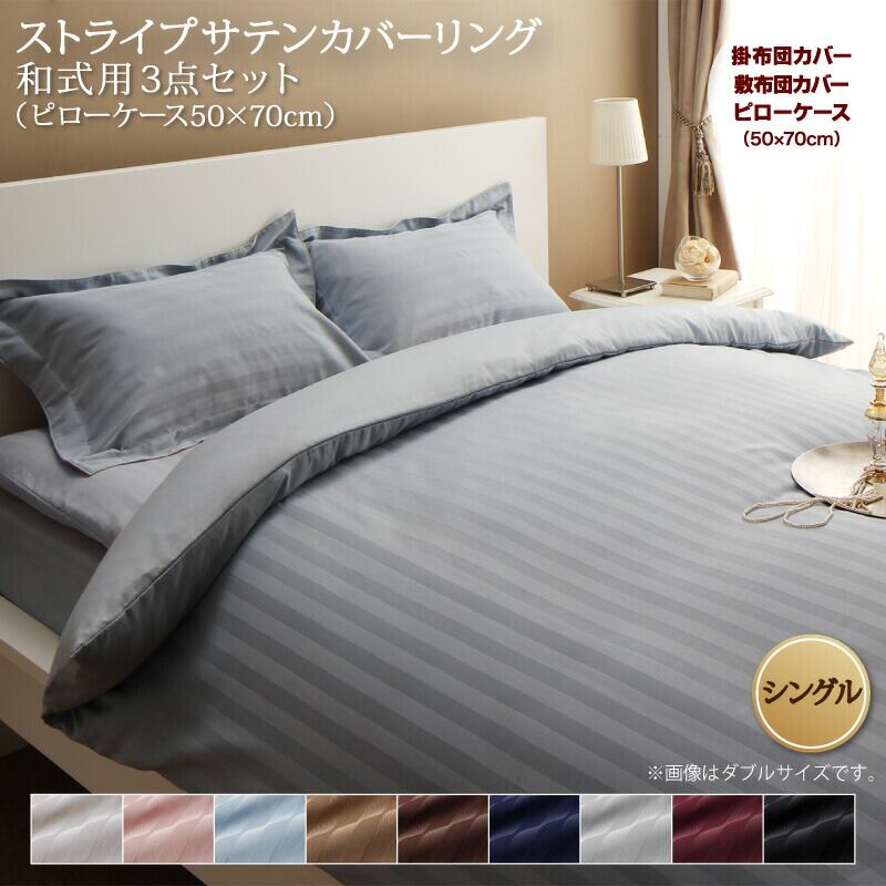9色から選べるホテルスタイル ストライプサテンカバーリング 布団カバーセット 和式用 シングル3点セット