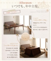 4段階で高さが変えられる 天然木ウォールナット材高さ調整こたつテーブル 長方形(80×135cm)