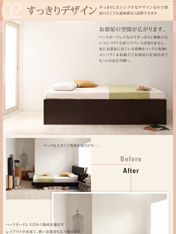 お客様組立 大容量収納庫付きすのこベッド HBレス 薄型スタンダードボンネルコイルマットレス付き シングル 深さラージ