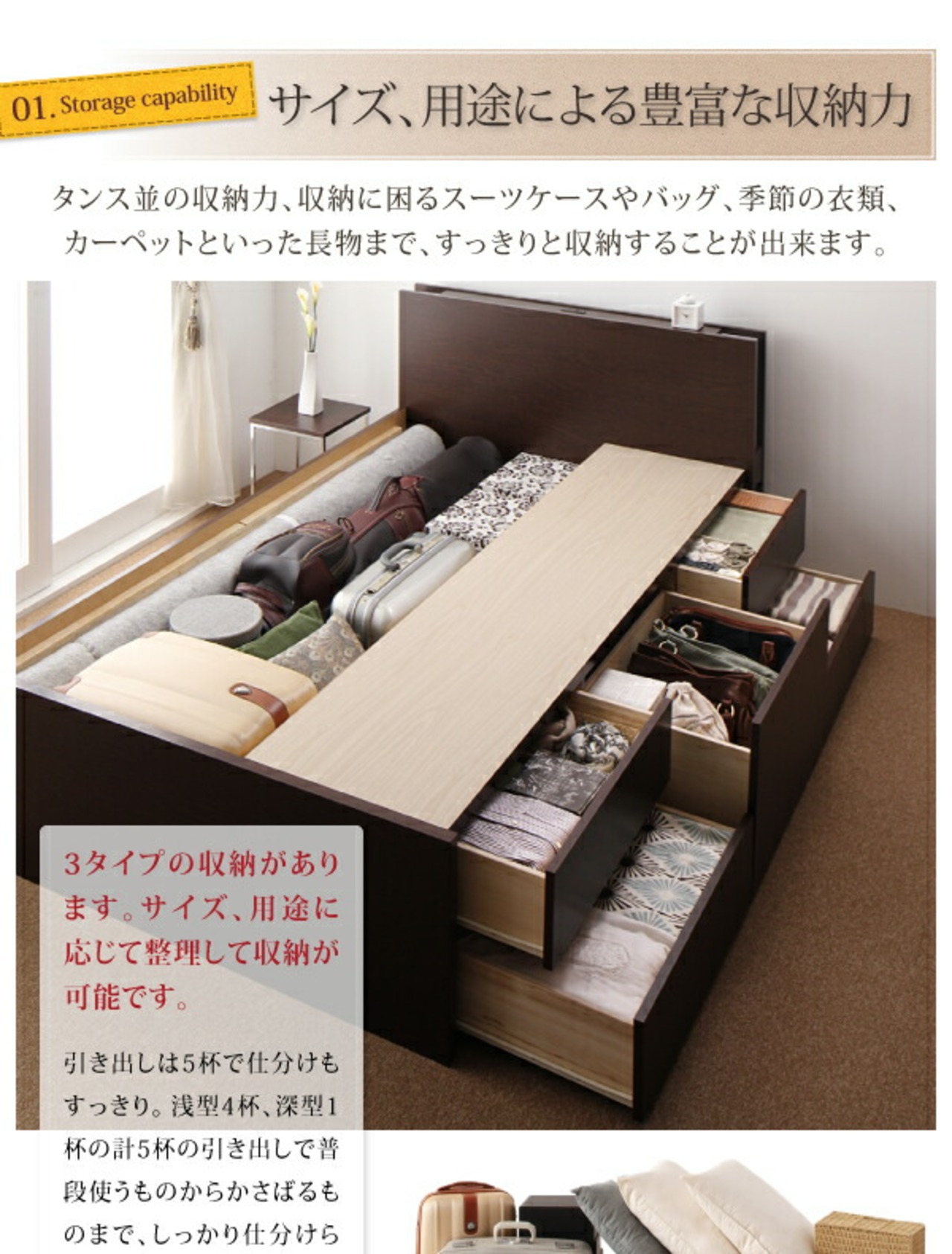 お客様組立 モダンライト・コンセント付きチェストベッド 薄型プレミアムポケットコイルマットレス付き セミシングル