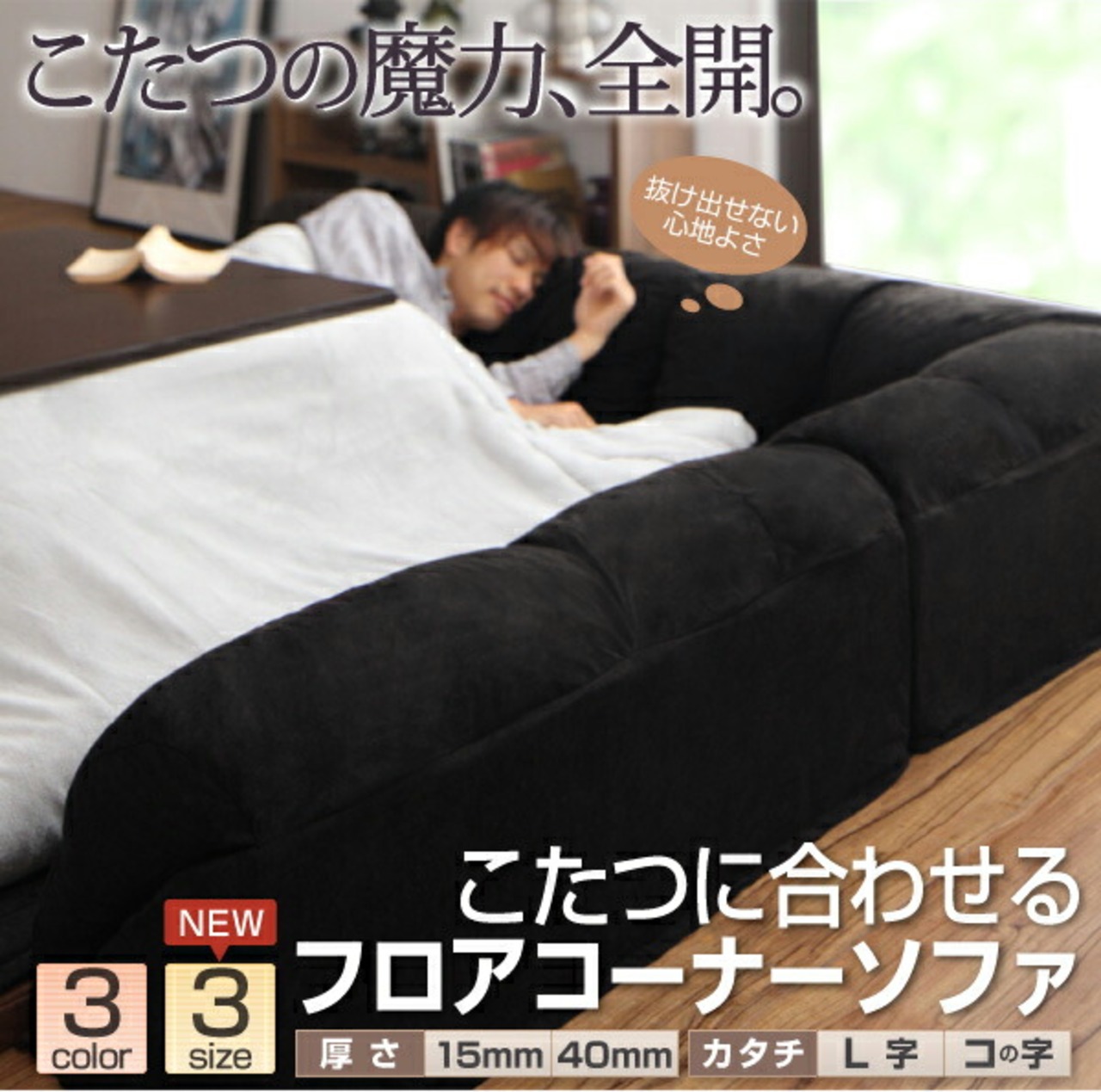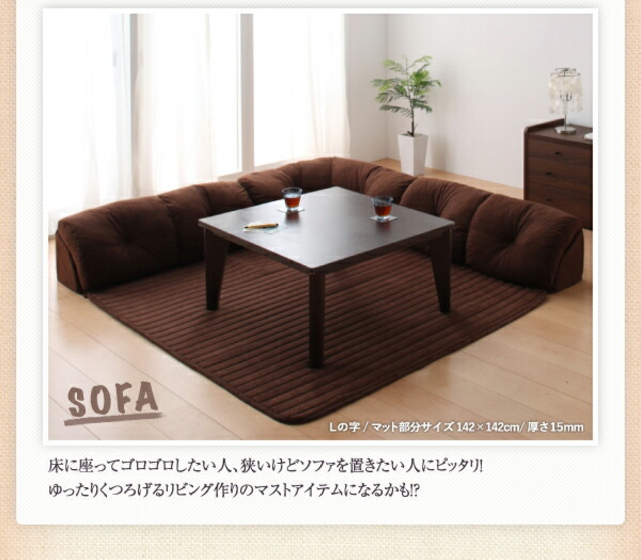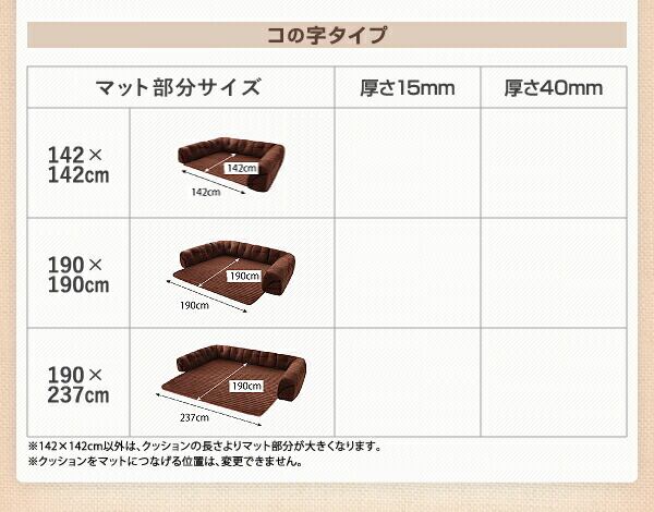 こたつに合わせるフロアコーナーソファ L字 マット部分サイズ 190×190cm 厚さ40mm