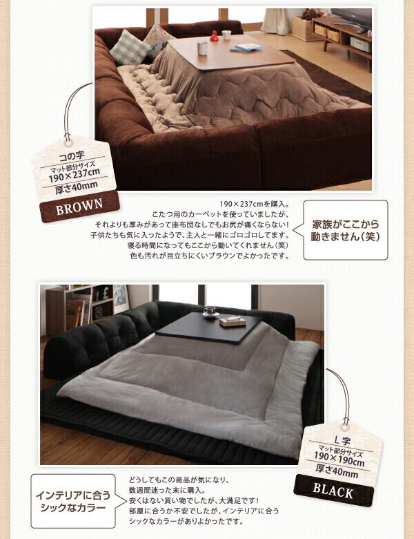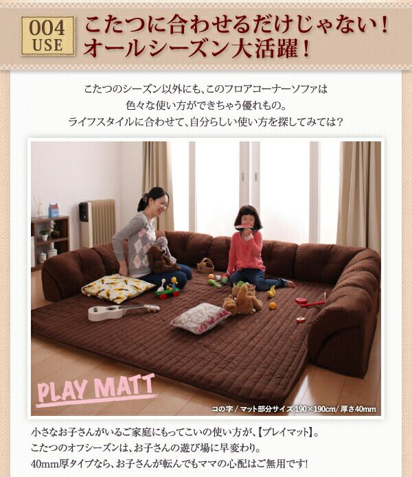 こたつに合わせるフロアコーナーソファ コの字 マット部分サイズ 190×190cm 厚さ40mm