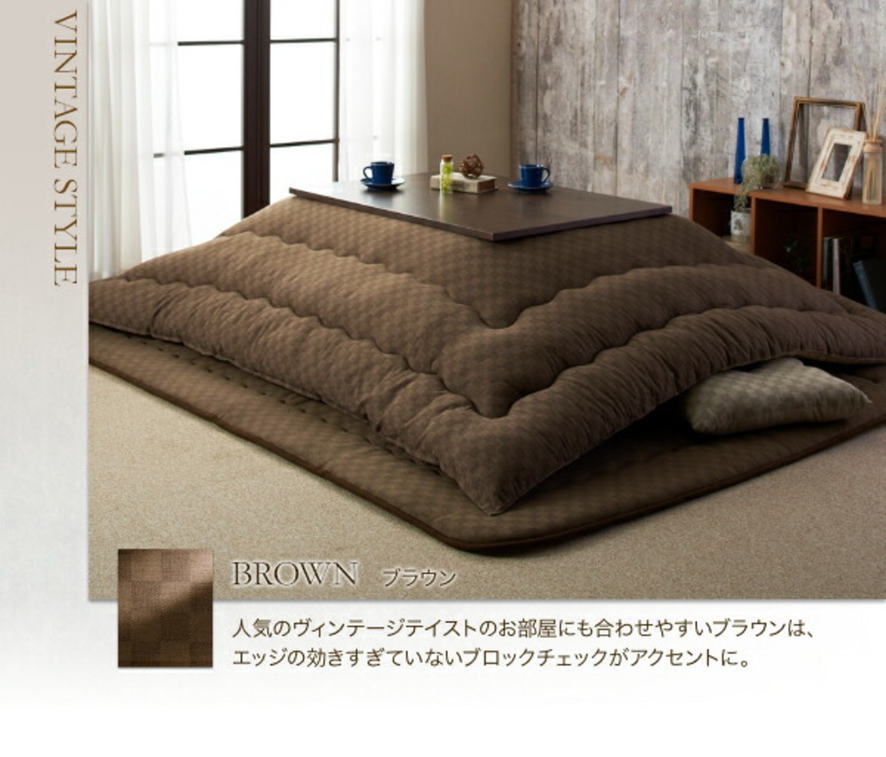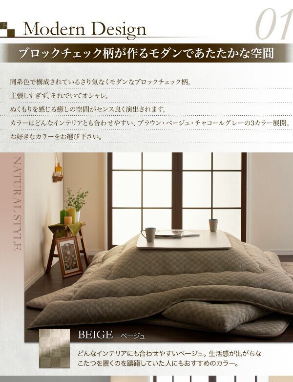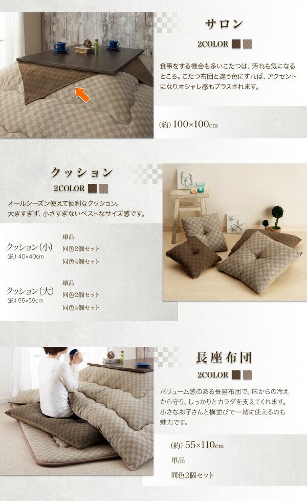 ブロックチェック柄こたつ布団 サロン 100×100cm