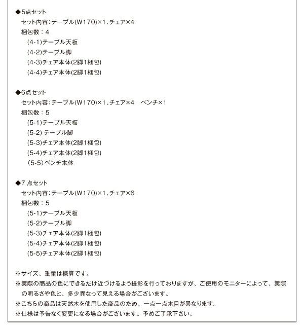 ダイニング5点セット(テーブル+チェア4脚) W170