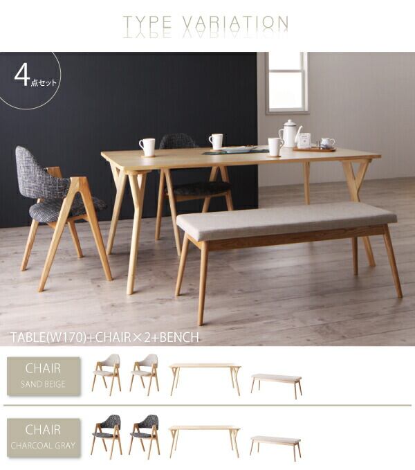 北欧デザインワイドダイニング 5点セット(テーブル+チェア4脚) W170