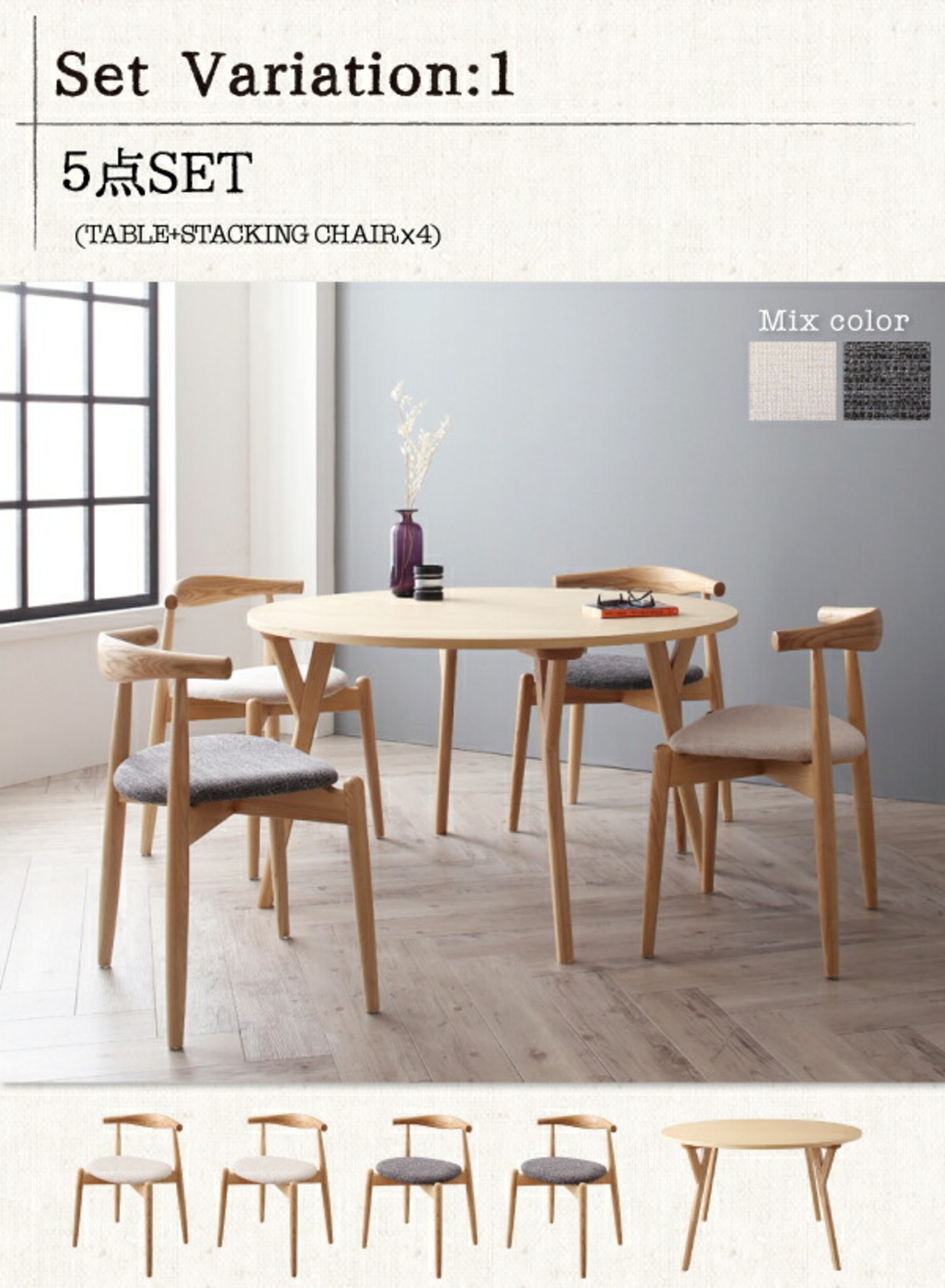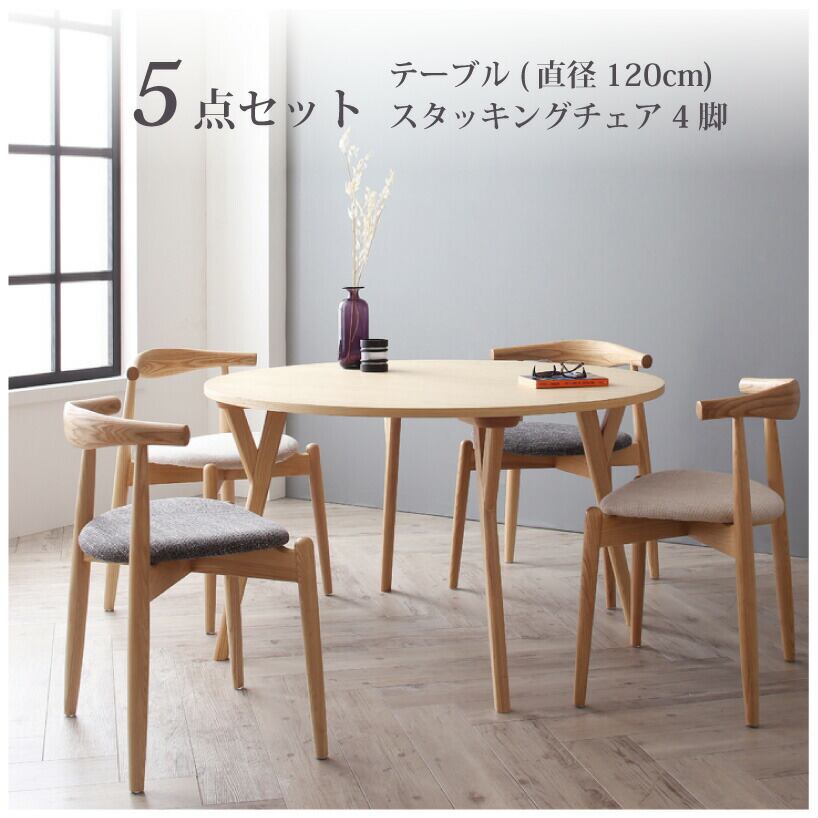 デザイナーズ北欧ラウンドテーブルダイニング 5点セット(テーブル+チェア4脚) スタッキングチェア 直径120