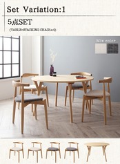 ダイニング5点セット(テーブル+チェア4脚) スタッキングチェア 直径120