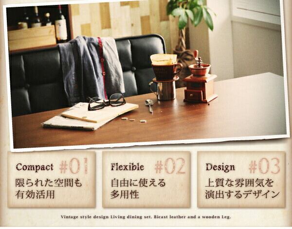 ヴィンテージスタイル・リビングダイニングセット 4点セット(テーブル+ソファ1脚+アームソファ1脚+チェア1脚) 右アーム W120