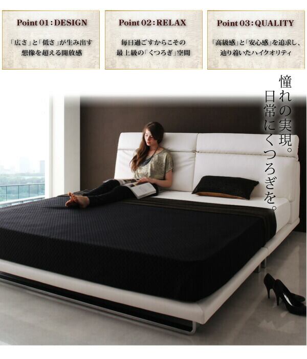 リクライニング機能付き・モダンデザインローベッド マルチラススーパースプリングマットレス付き ダブル