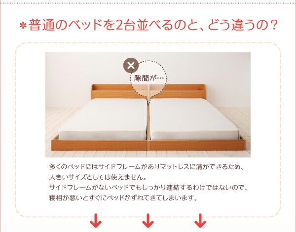 親子で寝られる棚・照明付き連結ベッド ベッドフレームのみ セミシングル