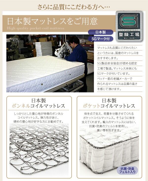 天然ラテックス入り国産ポケットコイルマットレス付き シングル