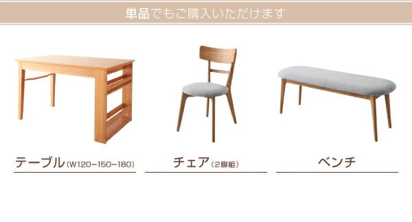 天然木オーク材エクステンションダイニング ベンチ 2P