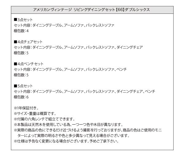 アメリカンヴィンテージデザイン リビングダイニングセット ダイニングテーブル W150