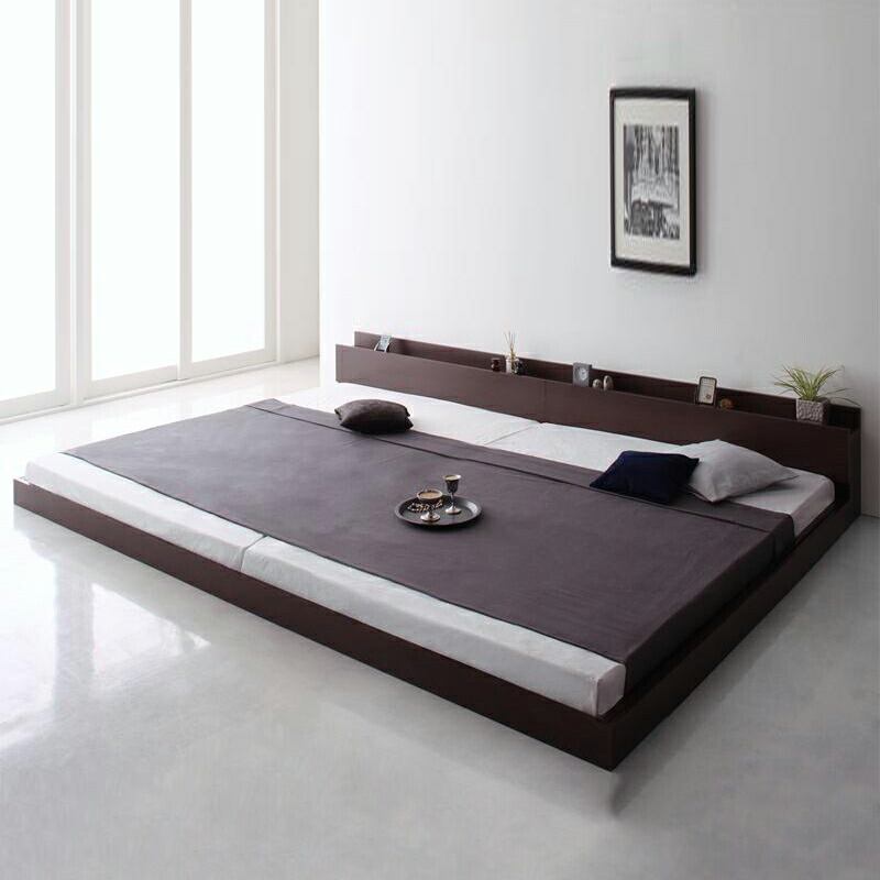 スーパーワイドキングサイズ 大型モダンフロアベッド プレミアムボンネルコイルマットレス付き ワイドK240(SD×2)