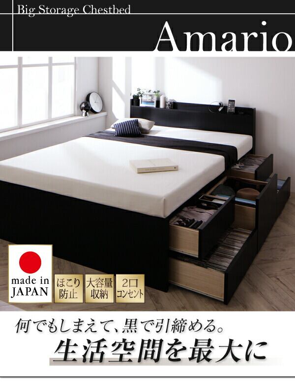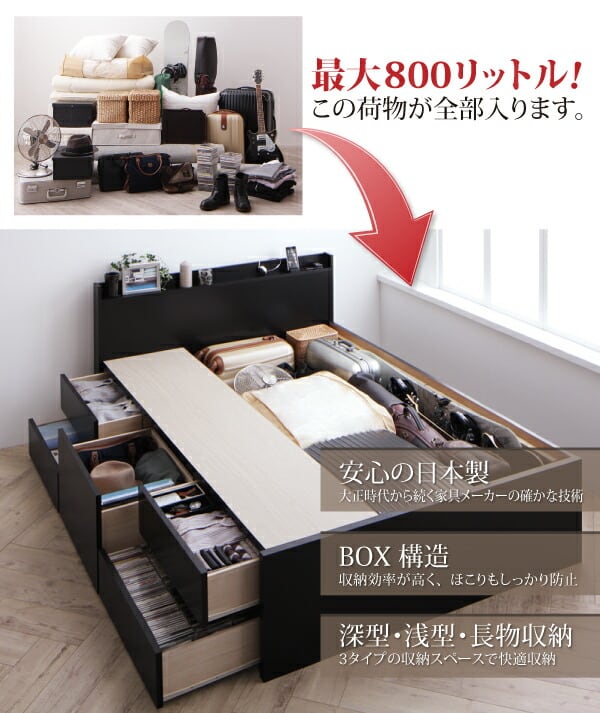 お客様組立 棚・コンセント付き_大容量チェストベッド ベッドフレームのみ セミダブル