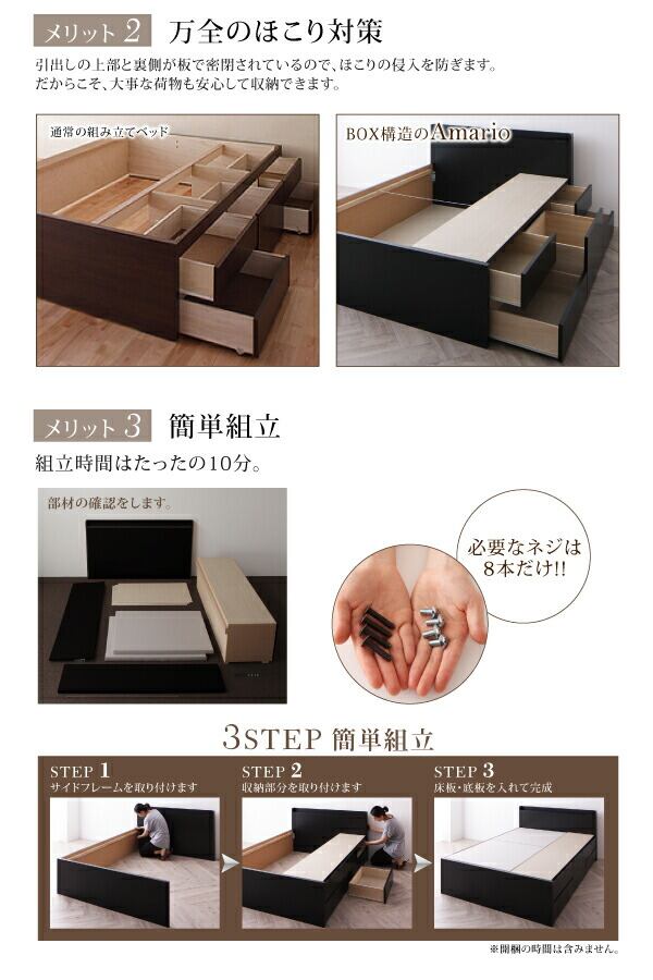 お客様組立 棚・コンセント付き_大容量チェストベッド 薄型スタンダードボンネルコイルマットレス付き シングル