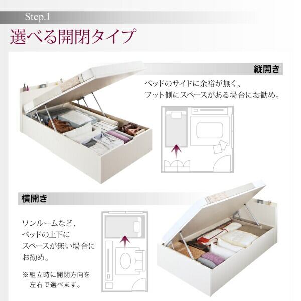 お客様組立 国産跳ね上げ収納ベッド ホワイト 薄型スタンダードボンネルコイルマットレス付き 横開き シングル 深さレギュラー