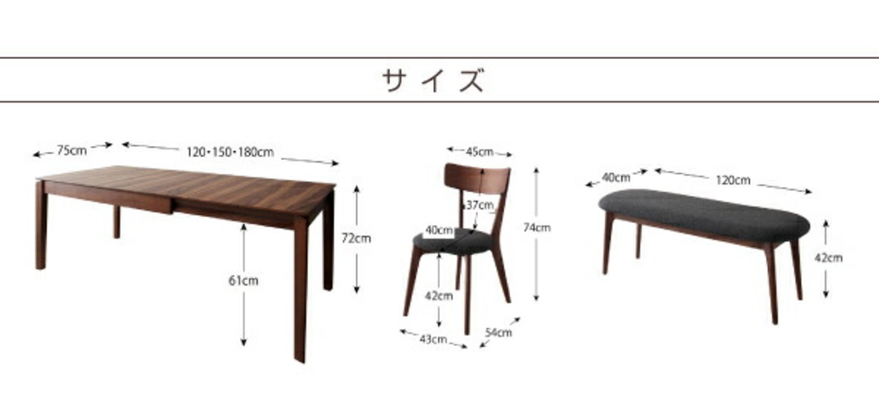 天然木ウォールナットエクステンションダイニング 5点セット(テーブル+チェア4脚) W120-180