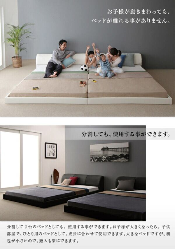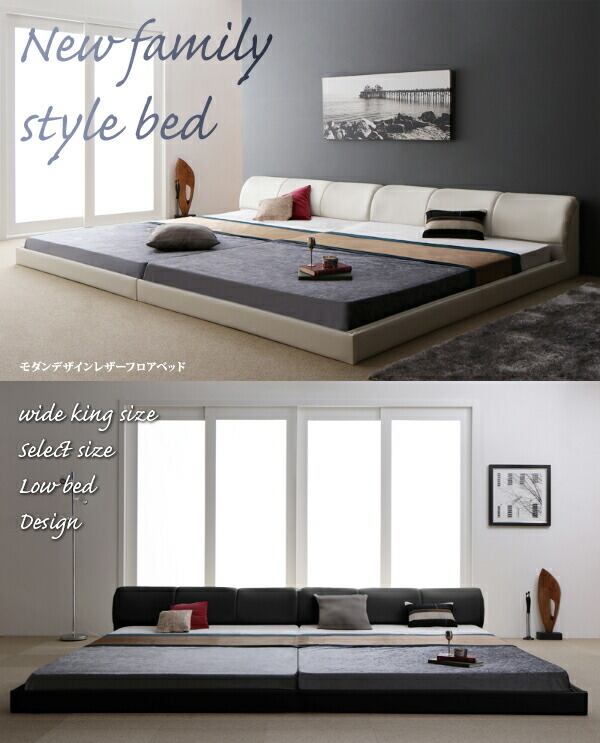 モダンデザインレザーフロアベッド ベッドフレームのみ ワイドK220(S+SD)